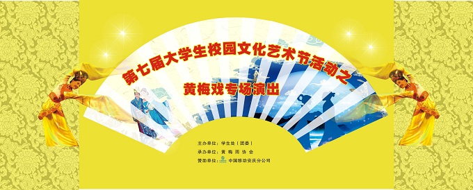 活动:第七届大学生校园文化艺术节之黄梅戏艺术专场演出时间:2015年6月18日晚6:30