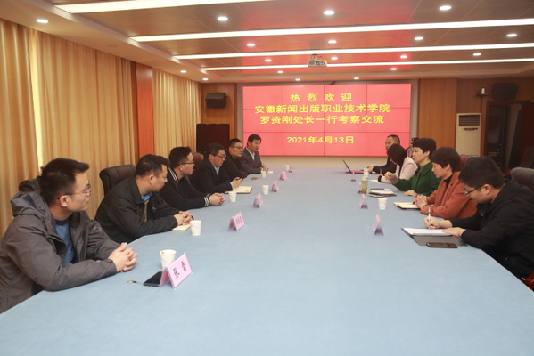 4月13日上午,安徽新闻出版职业技术学院教务处处长罗资刚一行到我校,就教学诊断与改进工作、智慧教务管理系统使用情况、教材管理、人才培养方案相关制度与执行措施、考试考务组织与实施等问题进行考察交流。我校教务处、质量办负责人在综合楼第二会议室接待了罗资刚一行。