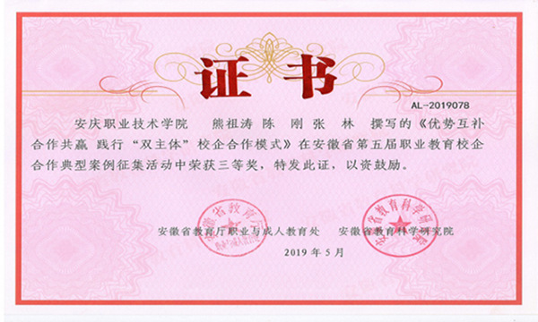 合作4年来,校企联合开发基于工作过程项目化教材9种,并正式出版发行,推进了校企合作专业教学内容创新;双方共同申报的“优势互补合作共赢践行‘双主体’校企合作模式”在安徽省第五届校企合作典型案例征集活动中荣获三等奖;通过校企联合委派指导教师辅导学生参加各类职业技能大赛,荣获安徽省职业技能大赛一等奖2项,二等奖3项,三等奖8项的好成绩;为进一步深化学生德育教育,2019年校企双方党组织共建“思政实践教育基地”在学生的素质教育方面获得多方认可;在2021年度久久久一区二区三区|亚洲精品一区二区三区不|久久av网|精品国产一区二区三区久久久久久|午夜精品av|久久久久久久久久久久久久av|日韩亚洲欧美综合优秀人才培养方案评选中,校企共建计算机网络技术专业人才培养方案获得一等奖;双方共同研究的“基于‘岗课赛证’融通的计算机网络技术专业人才模式的创新与实践”荣获安徽省教学成果奖三等奖。一项项奖牌,一项项荣誉,一项项成果充分体现了校企合作成果,推进了职业教育创新发展步伐。(文、图:陈 刚 审核:疏国会)