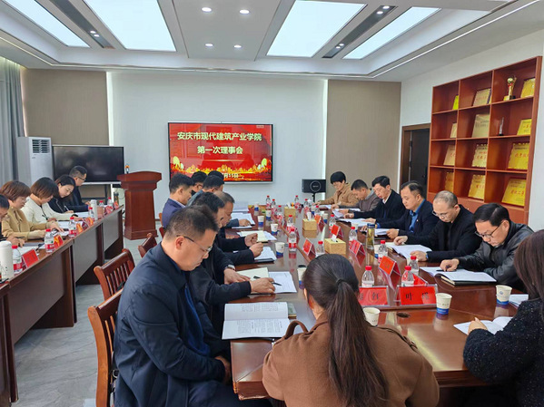 3月15日,安庆市现代建筑产业学院第一次理事会在我校建筑工程学院会议室隆重召开。校党委委员、副校长程飞出席会议并讲话。安庆市住房和城乡建设局办公室主任彭辉,安庆市建筑行业协会轮执会长、安徽万纬工程管理有限责任公司董事长王晓弘,安庆市建设工程造价协会常务副会长、安徽中信智力服务机构董事长汪姜峰,安庆市建筑装饰业协会常务会长、安庆市美集装饰设计事务所总经理胡斌,博信达建设集团有限公司董事长汪贤勇,安庆国丰住宅产业化集团有限公司董事长夏丰平,安徽鲁班建设投资集团有限公司副总经理章伟等省内外10余家企事业单位20余名代表参加会议。建筑工程学院党总支书记、院长陈月萍主持会议,该院相关专业建设负责人及教师代表参会。