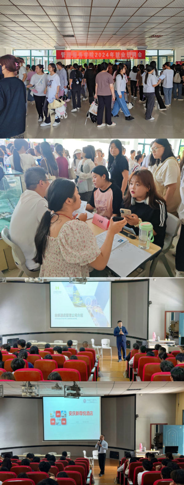 2024年上半年,该院党总支成员及各专业建设负责人、辅导员及专任教师等先后走访十余家企业。通过“走出去”与“请进来”相结合的方式,邀请30余家企业进校洽谈宣讲。访企拓岗搭建了校企合作交流平台,经过努力,该院先后与安庆丰大国际酒店、泰康之家徽园等多家行业头部企业签订合作协议,开拓实习就业岗位近400个。
