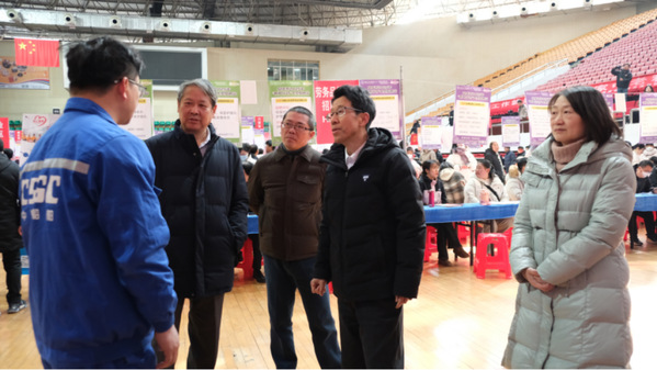 2月9日,校长毕明生,党委副书记李克让带领职能部门和二级学院相关人员,参加了由安庆市多部门承办的 2025年安徽省“春风行动”专场招聘会。我校省级职业指导大师张铮在招聘现场为求职者提供简历指导、本地岗位推荐等服务。
