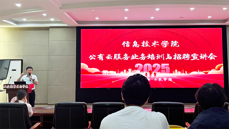 5月14日,订单班合作企业安庆安畅网络科技有限公司走进我校信息技术学院,在2号教学楼信仰报告厅成功举办公有云服务业务培训暨岗位招聘答疑会。活动吸引了来自计算机网络技术、计算机应用技术等专业的90余名学生参与。该院学生工作负责人主持活动。