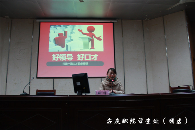 学生处(团委)负责人程飞、公共基础部党总支书记朱松节、教务处副处长储诚炜、心理健康教研室主任张铮,他们在培训期间先后分别以《高素质技术技能型人才培养视角下的学生活动组织与开展》、《党的十八届四中全会精神解读》、《自媒体时代大学生信息汲取与运用的策略——以新浪微博为例》、《学生干部表达能力的提高》为题从不同角度讲解,集中体现做好一名优秀学生干部必须要不断加强个人道德修养,提升自身综合素质,充实完善自己,发挥团队合作精神,提升领导艺术和管理才能。心理健康中心余慧玲老师组织全体参训人员参加了精心设计的综合素质拓展项目活动,鼓励他们不断提高自身的团队合作能力。整个培训虽然时间不长,但内容丰富,程序紧凑,组织有序,对培养和造就一支政治强、品德优,能力强、学习优的“双强双优”型学生干部队伍打下了坚实的基础。