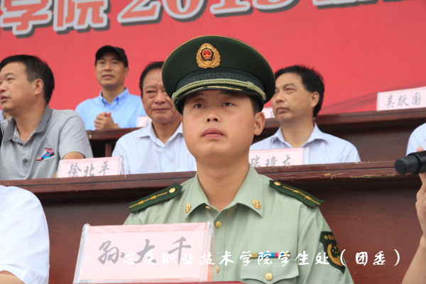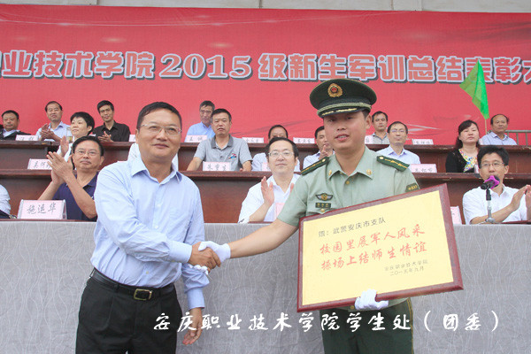 高亢口号轮回响,昂扬斗志振人心,英姿飒爽好风采。25号上午,我院2015级新生军训总结表彰大会在院田径场隆重举行。出席大会的有院党委书记王进、院长孙晓峰、副院长施运华、纪委书记方天祜、副院长谭维奇、副院长占峰、武警安庆市支队军训带队干部孙大千以及各系部、处室、中心负责同志,本次大会由副院长毕明生主持。