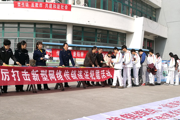 打击违法传销活动,创建美丽和谐校园。同学们纷纷表示,一定要学法、知法、懂法、守法,自觉抵制传销行为,加强自我教育、自我管理,为打击传销违法活动贡献自己的力量。(文/桂骏 图/王晓林)