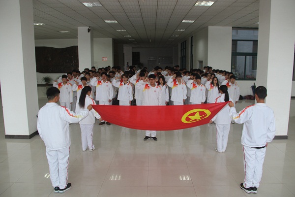 入团是一份自豪,更是一种动力。入团宣誓对新团员是一次严肃、庄重的教育。仪式在昂扬激亢、旋律优美的《光荣啊,中国共青团》的歌声中开始,新团员面对鲜艳的团旗,在领誓人的带领下举起右拳庄严宣誓:“为共产主义事业而奋斗!”洪亮的宣誓声音,振奋人心。同学们通过宣誓,加深了自己的团员意识,更加深刻体会到自己是一名光荣的共青团员。大家一致认为,身为一名共青团员,应坚定理想信念,结合“一学一做”精神教育,勇于创新,磨炼品质,提高品格,争做一名合格的共青团员。(文/陈颖  图/王大学)