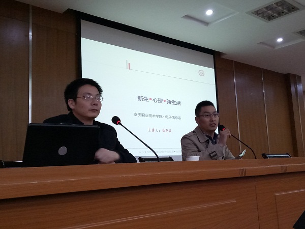 11月6日晚,科学人文艺术素质讲座《新生.心理.新生活》在图文信息三楼学术报告厅举行。本次讲座特邀徐英武老师主讲,来自各系部学生代表近200人聆听了讲座。