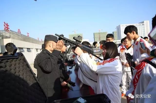 训练基地的操场上,主持人介绍了安庆市公安局特警支队训练基地和特警支队的整体建设情况;同学们观看了特警队员特种驾驶、攀登索降、搜排爆、警犬撕咬抓捕等特警科目表演;体验了特警网格巡逻日常防控工作。特警队员们精湛出色的战术演练和昂扬向上的饱满精神赢得在场学生们的阵阵欢呼和掌声,也将活动推向高潮,整个现场变成了欢乐的海洋。