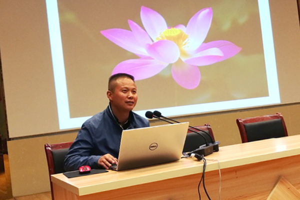 10月11日晚,科学人文素质教育讲座《独秀中华一枝花——品读中华传统莲文化》在图文一楼报告厅举行。本次讲座特邀闻胜海老师主讲,来自各系600余名学生聆听了讲座。