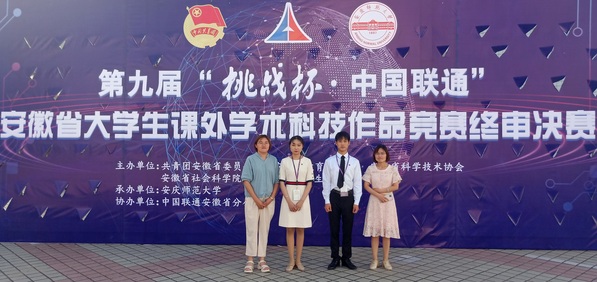 6月5日至6日,第九届“挑战杯”安徽省大学生课外学术科技作品竞赛终审决赛在安庆师范大学龙山校区圆满结束,我校报送省赛作品8件,入围终审决赛5件,最终获省一等奖1项、二等奖4项。