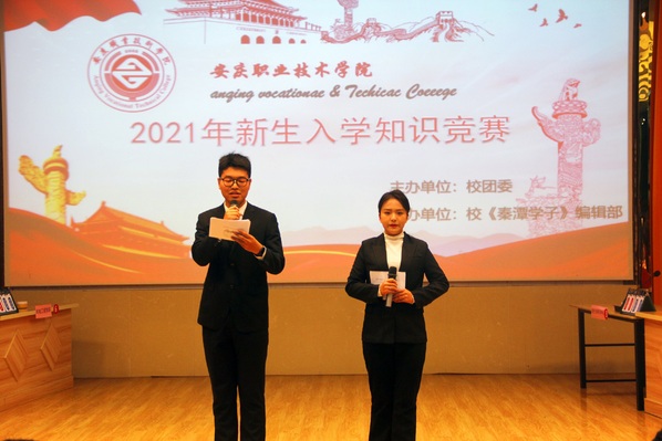 11月10日晚,由校团委主办,《秦潭学子》编辑部承办的2021级新生入学知识竞赛在图文一楼报告厅内举行。校团委书记陈颖、校团委副书记王婷、各二级学院团总支书记以及各二级学院500余名观众现场观看了比赛。