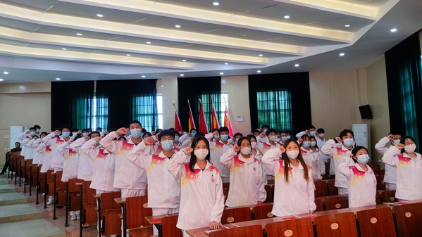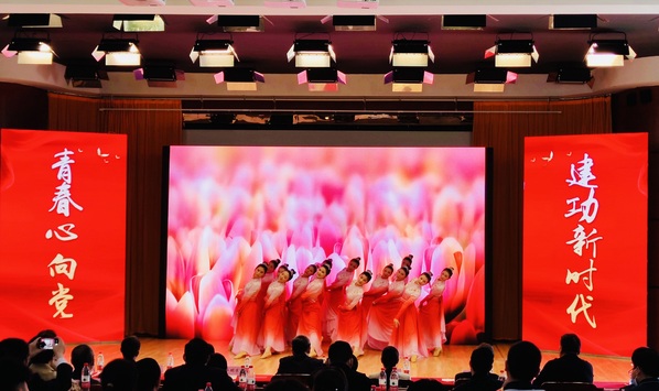 会上,73名新发展的团员学生集中进行了入团宣誓,团员学生展示了精彩的舞蹈和朗诵表演。在全场师生齐声共唱《光荣啊,中国共青团》的合唱中,表彰大会落下帷幕。