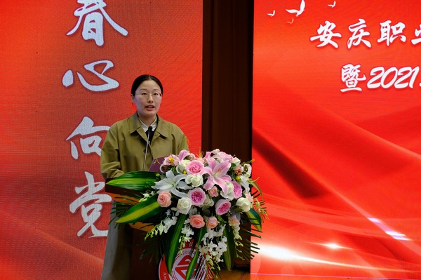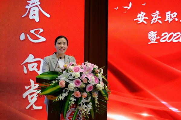 大会在庄严的国歌声中拉开序幕。团市委书记项薇为大会致辞,代表共青团安庆市委对大会的召开表示祝贺,对团员青年们致以节日的问候。她首先肯定了我校共青团工作取得的积极成效,同时向广大团员青年提出三点希望。一是要传承五四精神,坚定青春理想。继续巩固党史学习教育成果,牢记党的宗旨。二是要投身发展大局,展现青春作为。抓住安庆打造“五大宜城”、挺进“百强城市”的机遇,施展抱负、建功立业。三是要锤炼品德修为,彰显青春风采。带头践行社会主义核心价值观,做文明秩序、文明环境、文明风貌的表率。