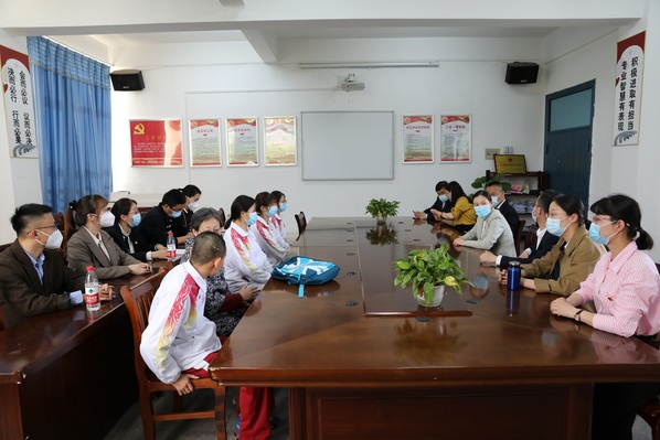 会后,团市委一行在校领导陪同下对在校的困难团员进行了慰问和座谈,并调研指导了管理服务学院团总支的团学活动现场。