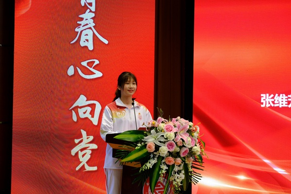 信息技术学院团员学生代表张维芳发言,表示要珍惜荣誉,再接再厉,做广大团员学生的表率,锐意进取,不断进步,成为有理想、有本领、有担当的新时代大学生。现代商务学院团总支书记何广强代表团组织发言,要继续履行好团组织引领凝聚青年、组织动员青年、联系服务青年的职责,紧紧围绕中心、服务大局,用责任和担当,擦亮青春的底色,汇聚起青春的长城。