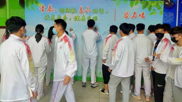 学生代表周蒋俊在班会课上宣读禁毒倡议:一要不忘历史,牢记毒害;二要从我做起,抵制毒品;三要积极参与,担当尽责。来自管理服务学院婴幼儿托育服务与管理专业的陈庆舒、信息技术学院计算机网络专业的朱天宇、现代商务学院市场营销专业的邵健平三位同学先后在班会课上交流自己的学习感受,表示在今后的学习生活中都会时刻保持清醒和警惕,珍爱生命,抵制毒品,争做禁毒宣传小卫士。活动最后,现场全体同学齐唱禁毒歌曲《生命》,并依次在禁毒宣传展板上签名承诺,班会课圆满结束。