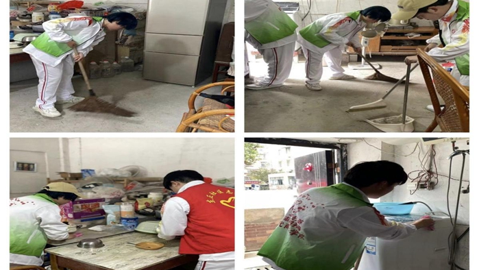 活动结束后志愿者们积极发扬奉献精神,不怕苦、不怕累,使用清洁工具对社区居民家中进行了彻底的清扫,并对家中物品进行摆放、整理。