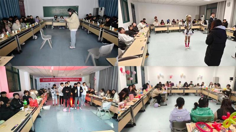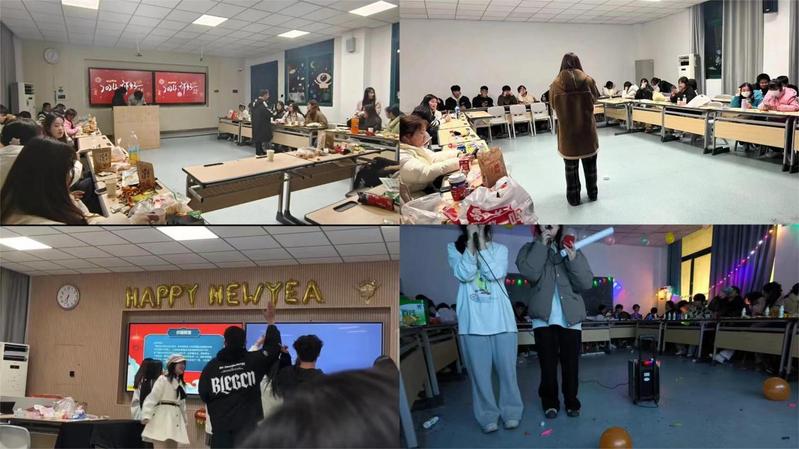 各班晚会现场经过精心布置营造出浓厚的节日氛围,同学们精心准备了各类节目,充分展现出他们卓越的才艺和无限的活力。舞蹈、歌唱、小品、戏剧等各类表演形式让人目不暇接,现场掌声、欢呼声此起彼伏。晚会中穿插的游戏互动环节也极大地调动了同学们的热情,气氛达到了高潮,教室里充满了欢乐与温馨。