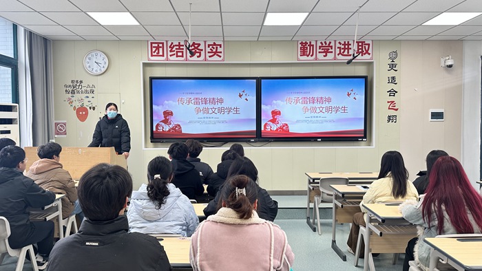 后,李慧作《传承雷锋精神 争做文明学生》的主题团课宣讲,介绍了雷锋的生平事迹和精神内涵,号召同学们学习雷锋同志无私奉献、助人为乐的崇高品质。倡导大学生做到:在人生目标上,全心全意为人民服务;在工作上,爱岗敬业,尽职尽责;在生活上,勤俭节约,乐于助人;在学习上,学无止境,永不懈怠;在作风上,谦虚谨慎,不骄不躁。