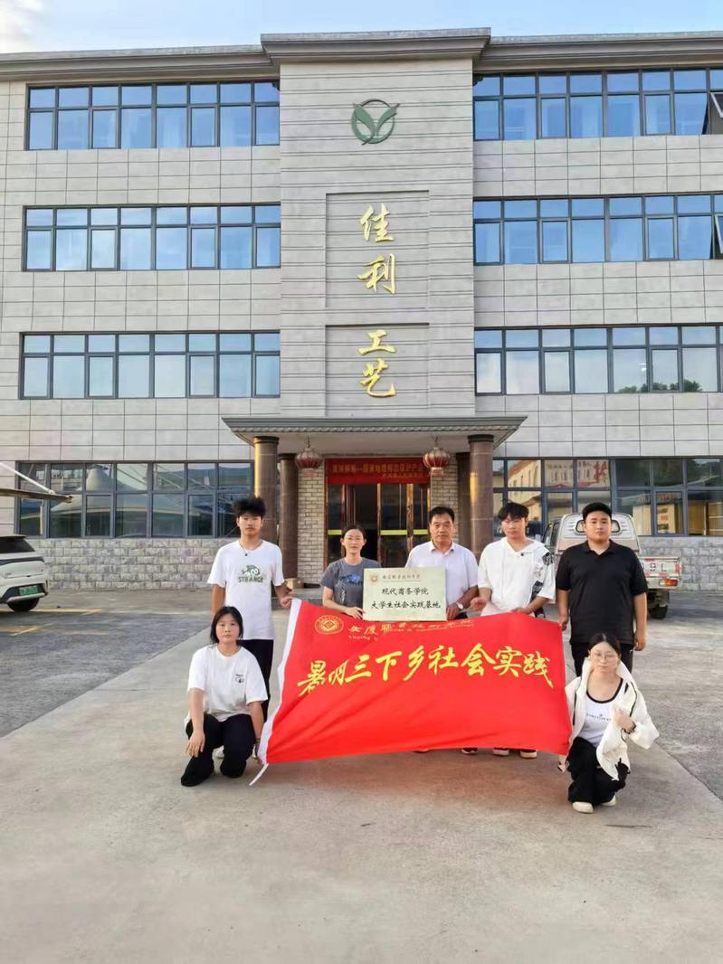 7月9日,现代商务学院师生一行6人到阜南佳利工艺品股份有限公司开展“大学生社会实践基地”揭牌仪式暨暑期“三下乡”社会实践调研活动。