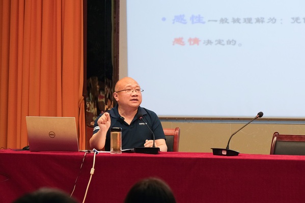 许迪楼以德国诗人荷尔德林《人,诗意地栖居》和冯友兰先生的人生四境界开篇,接着讲到追求“真善美”,不做“半个人”,即通过读书、求真、求善、求美,实现个人的全面均衡发展;选择自己喜欢读、能读、需要读的,以书为友为师,传道、授业、解惑,给心灵安家等方面。