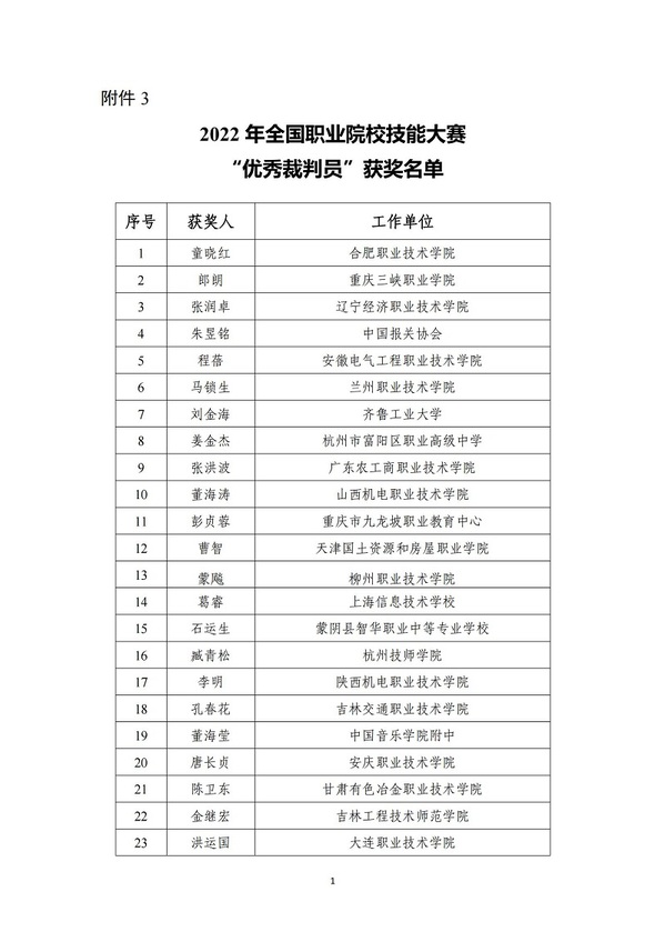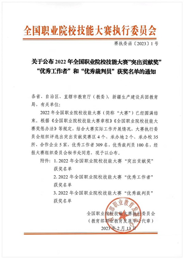 日前,全国职业院校技能大赛执行委员会发布了《关于公布2022年全国职业院校技能大赛“突出贡献奖”“优秀工作者”和“优秀裁判员”获奖名单的通知》(赛执委函〔2023〕1号),农林与服装学院唐长贞教授获评2022年全国职业院校技能大赛“优秀裁判员”。