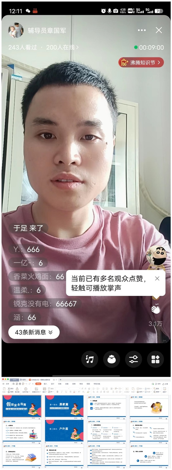 离校不离导员责任,假期常有学院叮嘱。本次安全教育主题班会的召开,切实加强了学生的安全意识,提高了学生防范意识,夯实了学生安全管理工作,为校园安全教育增添了一道防线。(文、图:章国军 审核:许咏梅)