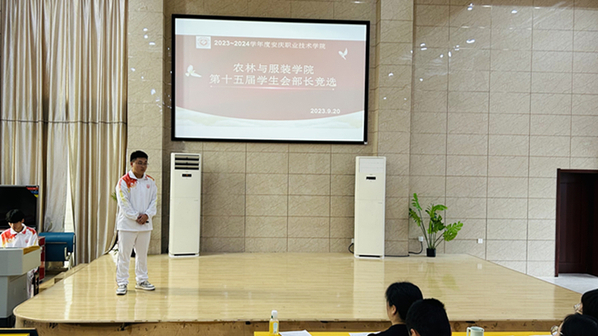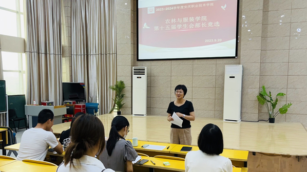 9月20日,农林与服装学院在2栋教学楼316教室举行了第十五届学生会部长竞选活动,学生工作负责人、团学工作教师、专职辅导员及相关学生代表参加。
