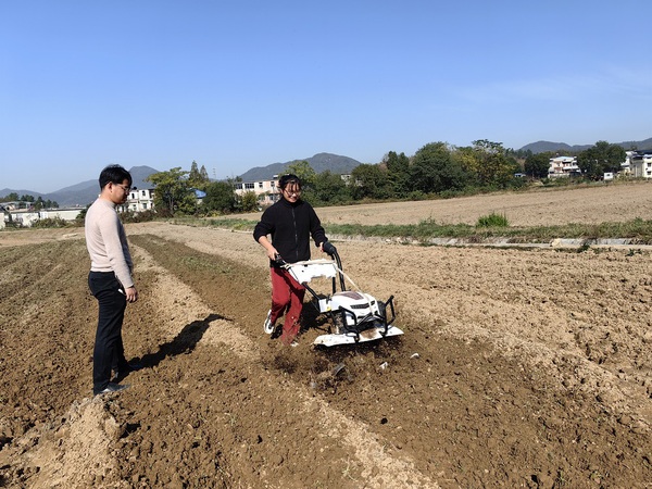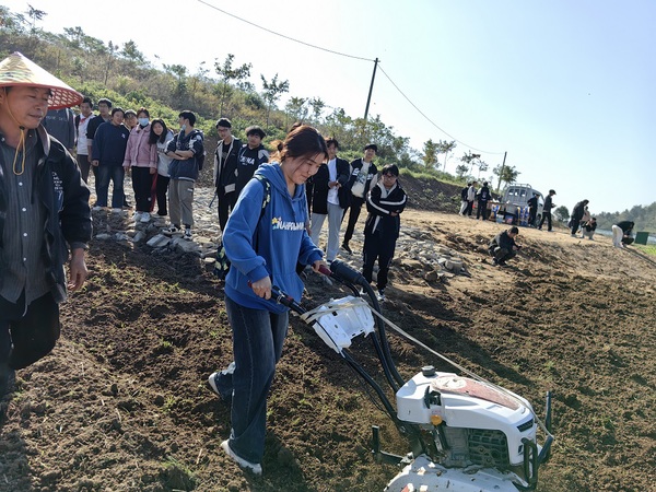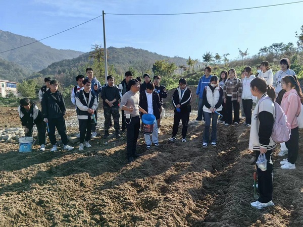 11月18日,农林与服装学院植物保护与检疫专业62名学生在专业教师的带领下,前往安庆市周边的大龙山镇陇民之家蔬菜种植基地和安庆市农资大市场开展课程实践教学活动。实践教学期间,陇民之家负责人江国总经理向同学们详细介绍了冬季蔬菜种植的情况、有机肥的优势与特点、施肥蔬菜技术和企业对于植物保护与检疫技术专业的用人需求,并与同学们就种植技术进行了深入交流。在种植基地技术人员的指导和安全保障下,同学们进行了基肥的施肥,并纷纷尝试施耕机的使用,将基肥翻入土壤后各组同学完成了蚕豆的种植。